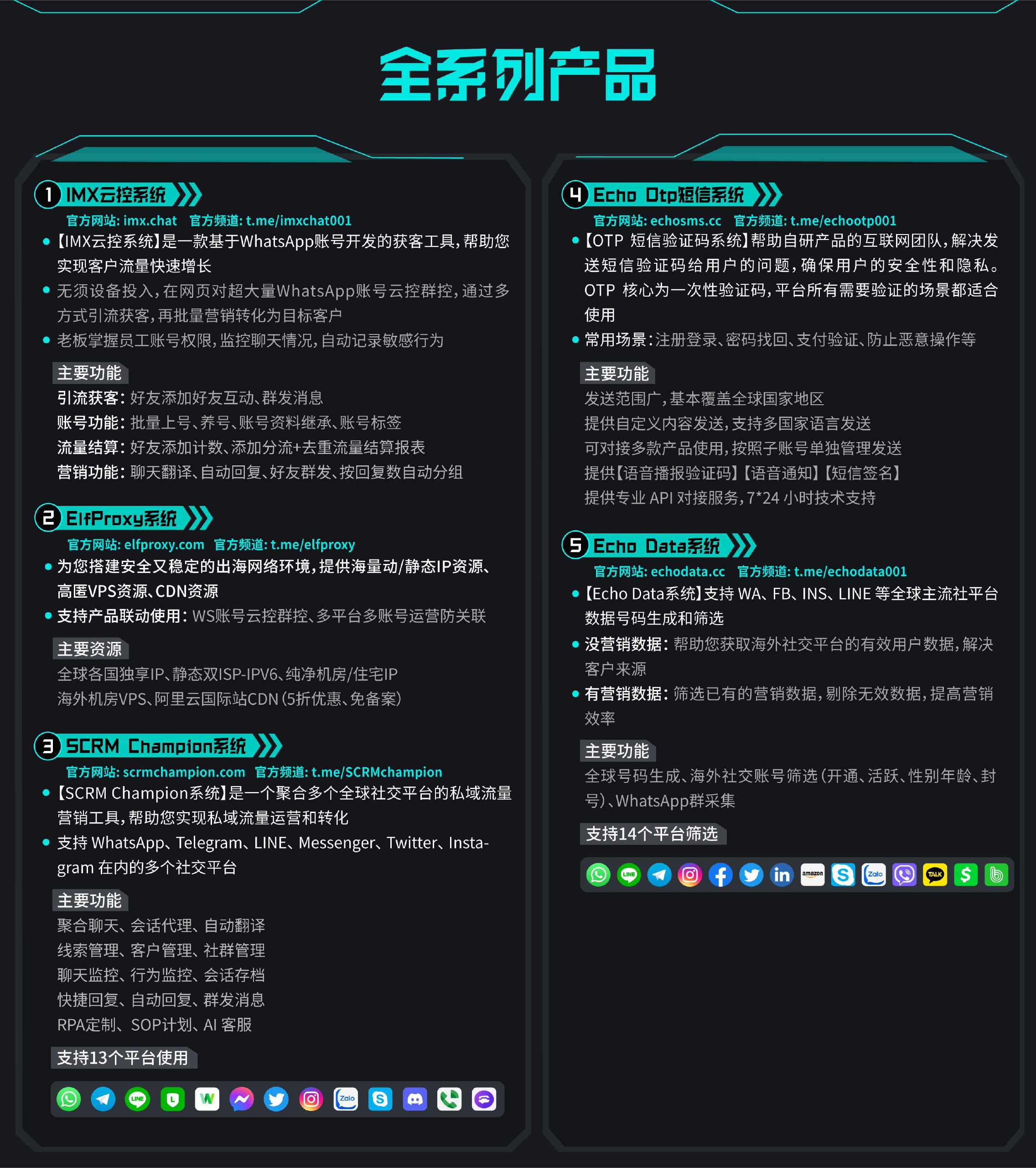 Hello,欢迎咨询SCRMChampion,SCRMChampion是一个聚合多个全球社交平台的私域流量营销工具,为用户提供多平台多帐号登录的客服坐席管理,以及多语言自动翻译,自动化快捷回复,营销数据统计分析,员工日常行为监控等功能。了解更多产品详情及最新动态,请关注SCRMchampion官方频道