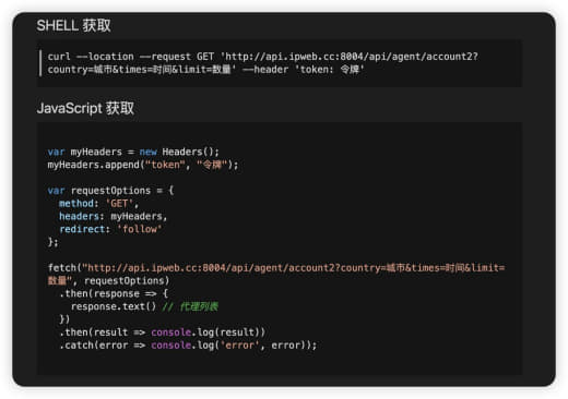 http://api.ipweb.cc:8004/api/agent/account2?country=SG×=30&limit=10